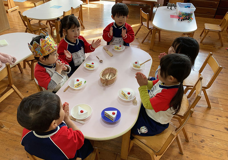 3歳未満児は子どものリズムでゆっくり優しく丁寧に。育児担当制保育を取り入れ、発達に応じた環境設定に取り組んでいるところです。3歳以上児は異年齢保育の中で子ども達がお互いを尊重しながら生活し、主体的な活動を目指し、楽しく刺激を受け合って学び成長しています。