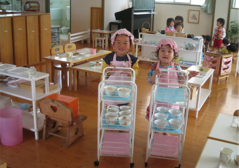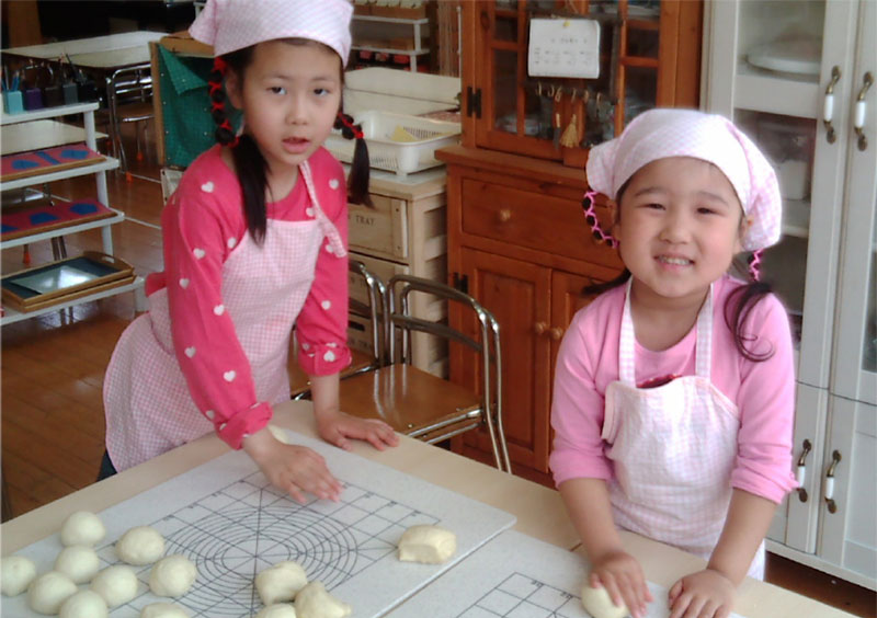 日常生活の練習・感覚・言語・数等に必要な環境を整え、特にクッキングを通して、自尊感情、社会性、自立心を育てます。
